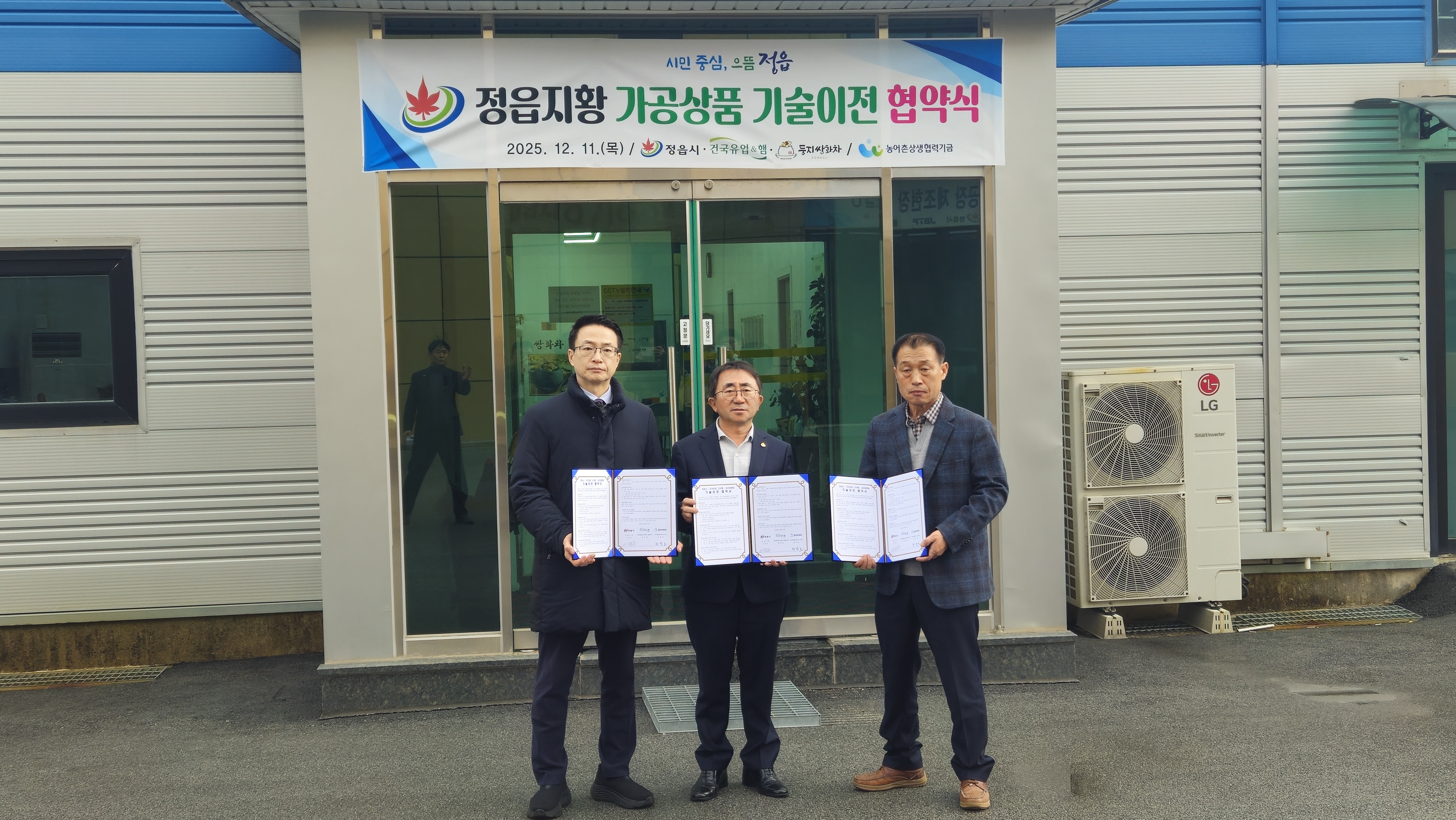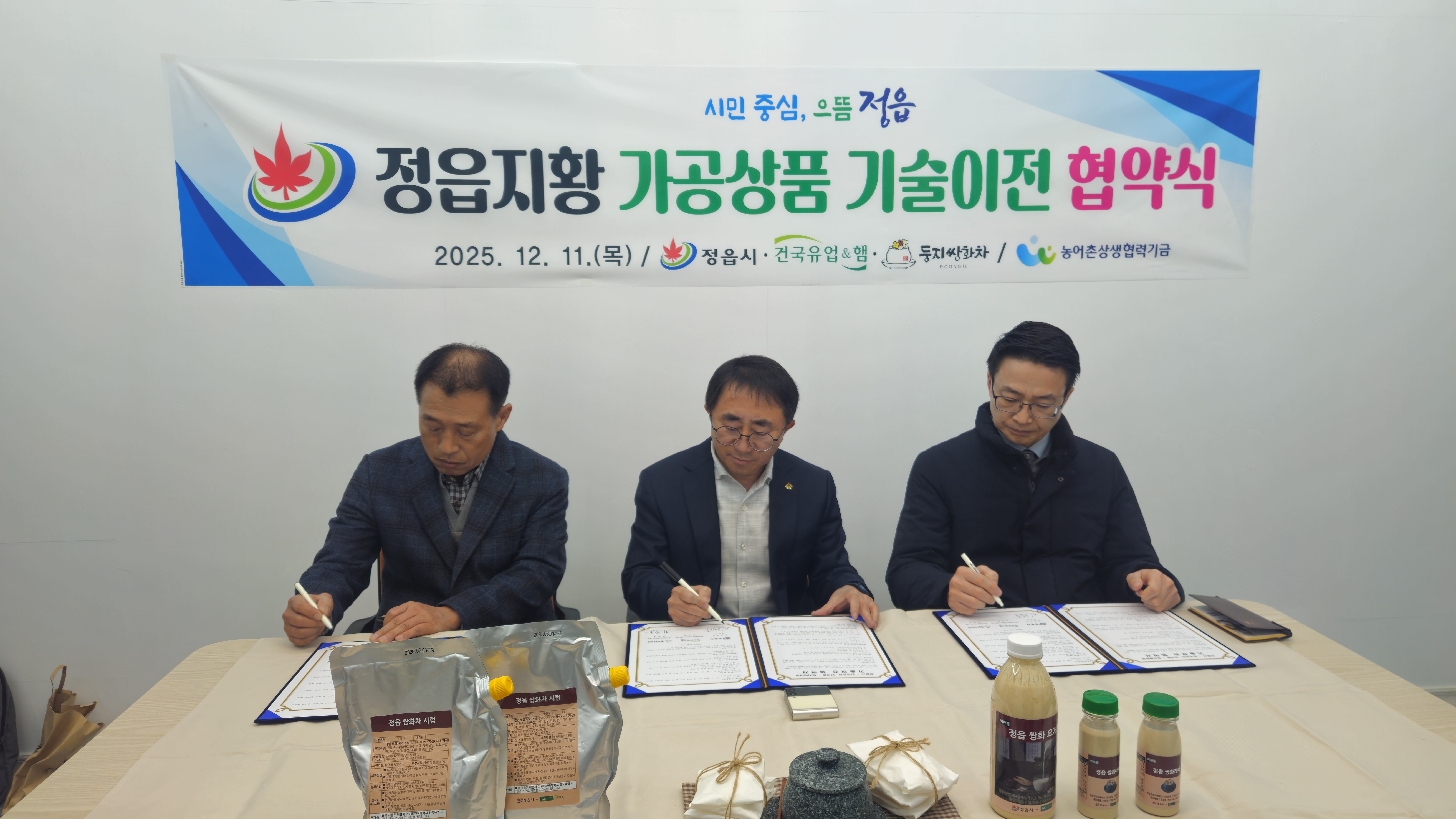 정읍시-건국유업-둥지 업무협약 (25.12.11.) 페이지 정보 작성자 정읍지황융복합사업단 댓글 0건 조회 3회 작성일 25-12-11 16:44 목록 본문 . 다음글제6차 사업추진협의회 (25.11.25.) 25.11.26 댓글 0 댓글목록 등록된 댓글이 없습니다.