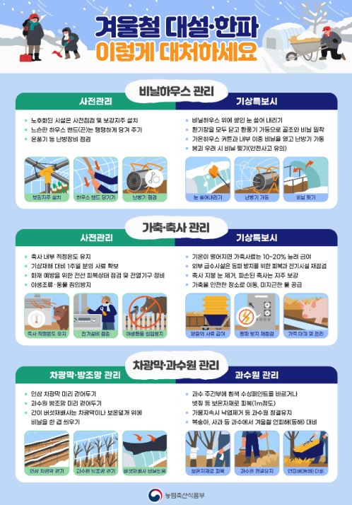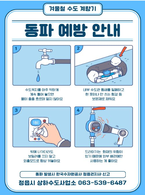 겨울철 분야별 한파 행동요령 페이지 정보 작성자 정읍지황융복합사업단 댓글 0건 조회 355회 작성일 25-12-03 11:12 목록 본문 분야별 한파 행동요령 - 한파예방 6대 국민행동요령 - 농업분야 -수도 동파분야 -야외작업자 이전글1530 워킹정읍 『워크온』 12월 챌린지 25.12.08 다음글차세대 농업농촌통합정보시스템 「농업e지」 홍보 알림 25.12.01 댓글 0 댓글목록 등록된 댓글이 없습니다.