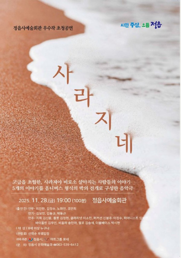정읍사예술회관 우수작 초청공연 관람 홍보(음악극_사라지네)