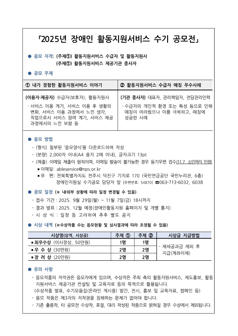 2025년 장애인활동지원서비스 수기 공모전 안내