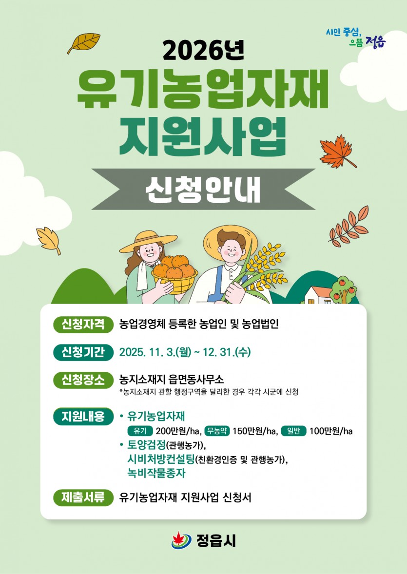 - 다음글2026년 벼 병해충 방제 지원사업 공급업체 신청 안내 25.12.02